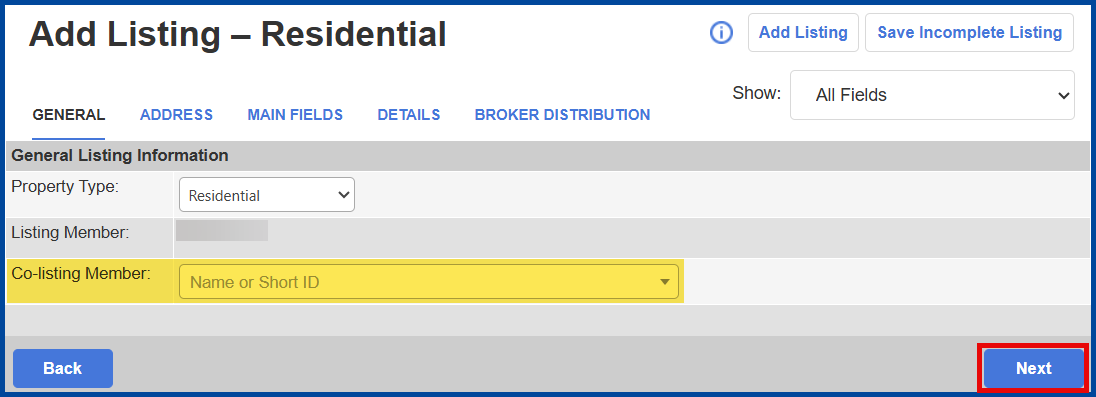 Add a Co-listing Member (if applicable), otherwise click Next to continue.