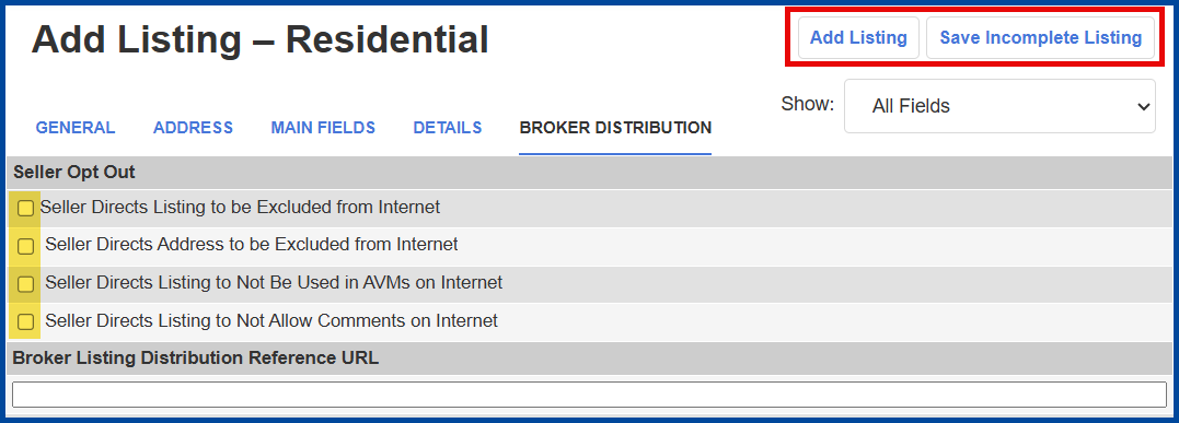 This section displays listing distribution options. Check the corresponding boxes to choose distribution limitations.