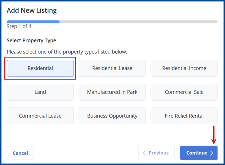 Select the Property Type, then click Continue on the bottom-right corner of the page.