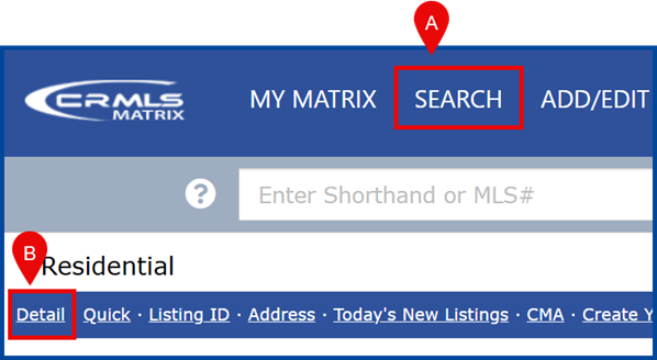 Go to Search, then click Detail under the preferred property type (e.g., Residential)