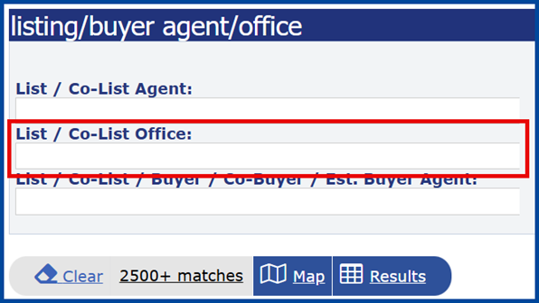 Apply any desired filters, then locate the List/Co-List Office field towards the bottom of the form