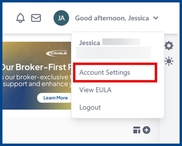 Log in to your dashboard, then go to your initials on the top right of the homepage. Click Account Settings to update the contact information for MFA.