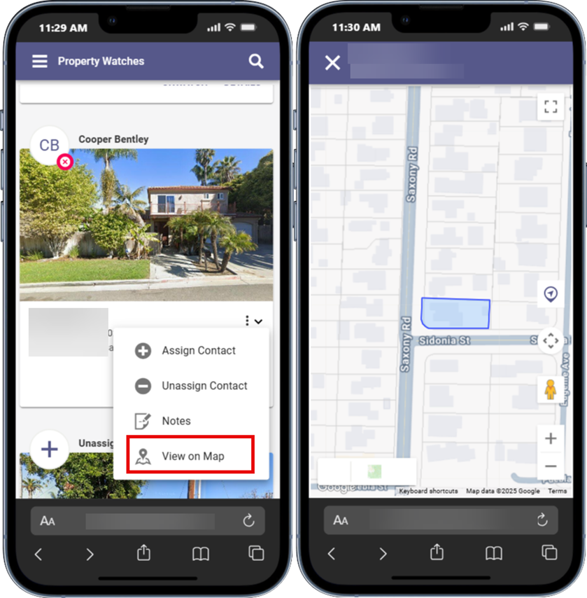 The Property Watch cards now feature a “View on Map” function that maps the watched property.