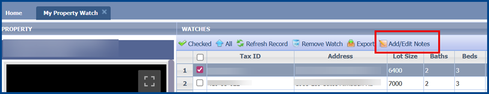 Add notes via the Paragon Pro Tax module, located under My Property Watch.