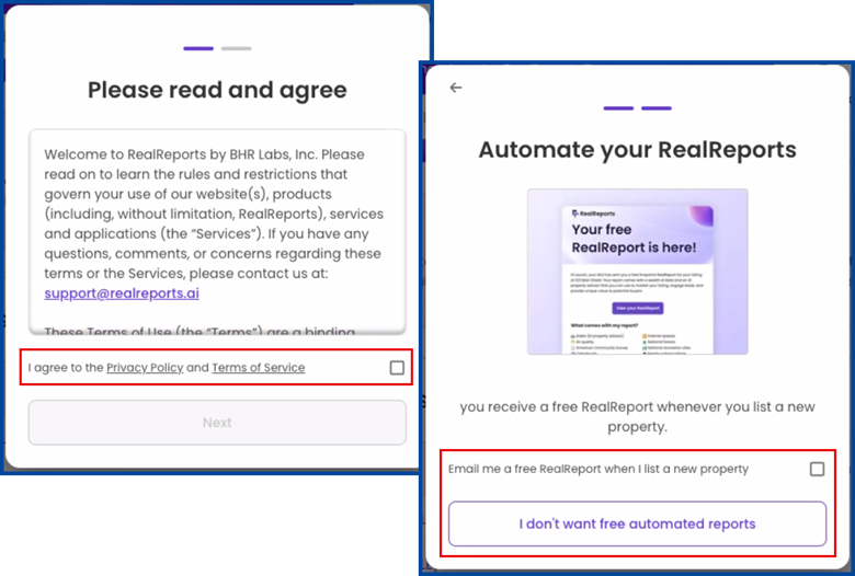 Accept the terms and conditions and choose whether to receive automated reports.
