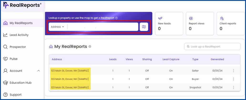 Note: Sample reports are available to view how the RealReport will look.