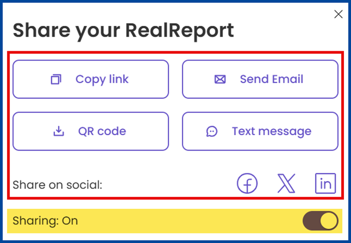 Note: Use the Sharing toggle to pause RealReport access.