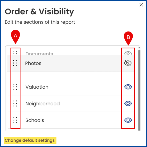Note: Click “Change default settings” to save the order and visibility for all future RealReports.