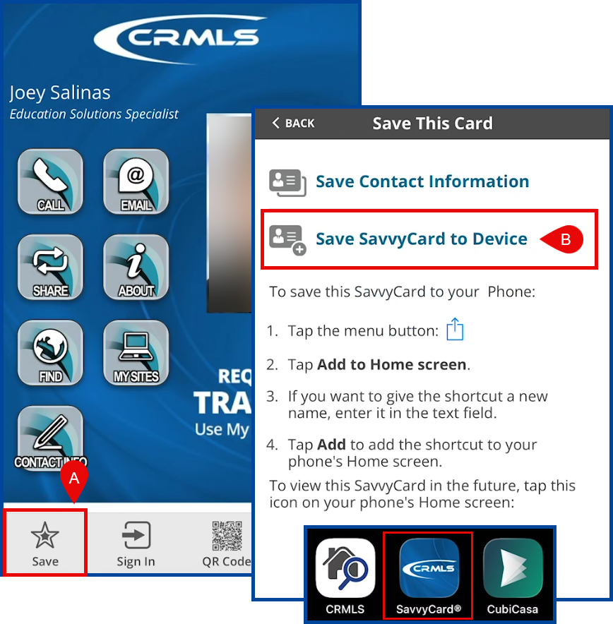 B: Choose Save SavvyCard to Device and follow the necessary steps (depending on device).